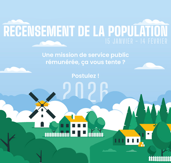 A l’occasion du Recensement de la Population qui se déroulera du 15 Janvier 2026 au 14 Février 2026, la commune recrute 18 agents recenseurs.