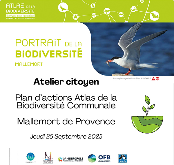 Réalisé en partenariat avec Aix-Marseille provence Métropole et LPO PACA, l’ABC de Mallemort a permis d’identifier 1 053 espèces présentes sur la commune, soit 18 % de la faune et de la flore terrestre de la Métropole Aix-Marseille-Provence.